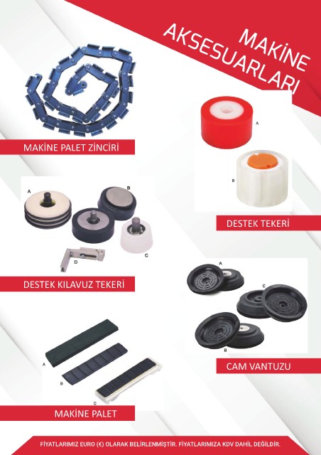 MAKİNE MAKİNE PALET ZİNCİRİ AKSESUARLARI DESTEK TEKERİ DESTEK KILAVUZ TEKERİ CAM VANTUZU MAKİNE PALET FİYATLARIMIZ EURO (€) OLARAK BELİRLENMİŞTİR. FİYATLARIMIZA KDV DAHİL DEĞİLDİR.