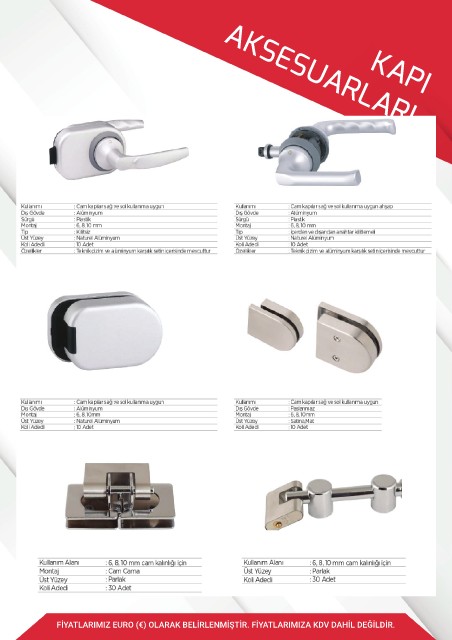 KAPI AKSESUARLARI FİYATLARIMIZ EURO (€) OLARAK BELİRLENMİŞTİR. FİYATLARIMIZA KDV DAHİL DEĞİLDİR.