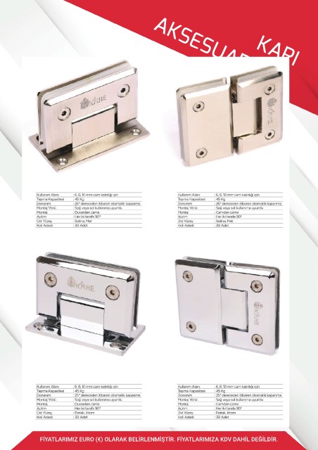 KAPI AKSESUARLARI FİYATLARIMIZ EURO (€) OLARAK BELİRLENMİŞTİR. FİYATLARIMIZA KDV DAHİL DEĞİLDİR.